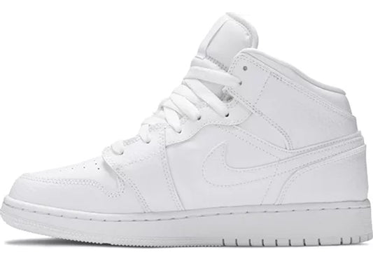 Jordan 1 Mid Triple White Tumbled Leather (GS)