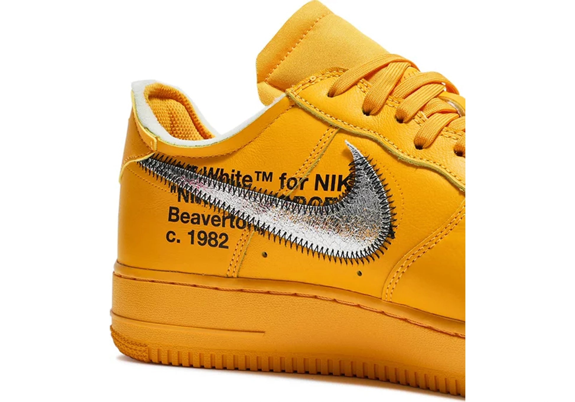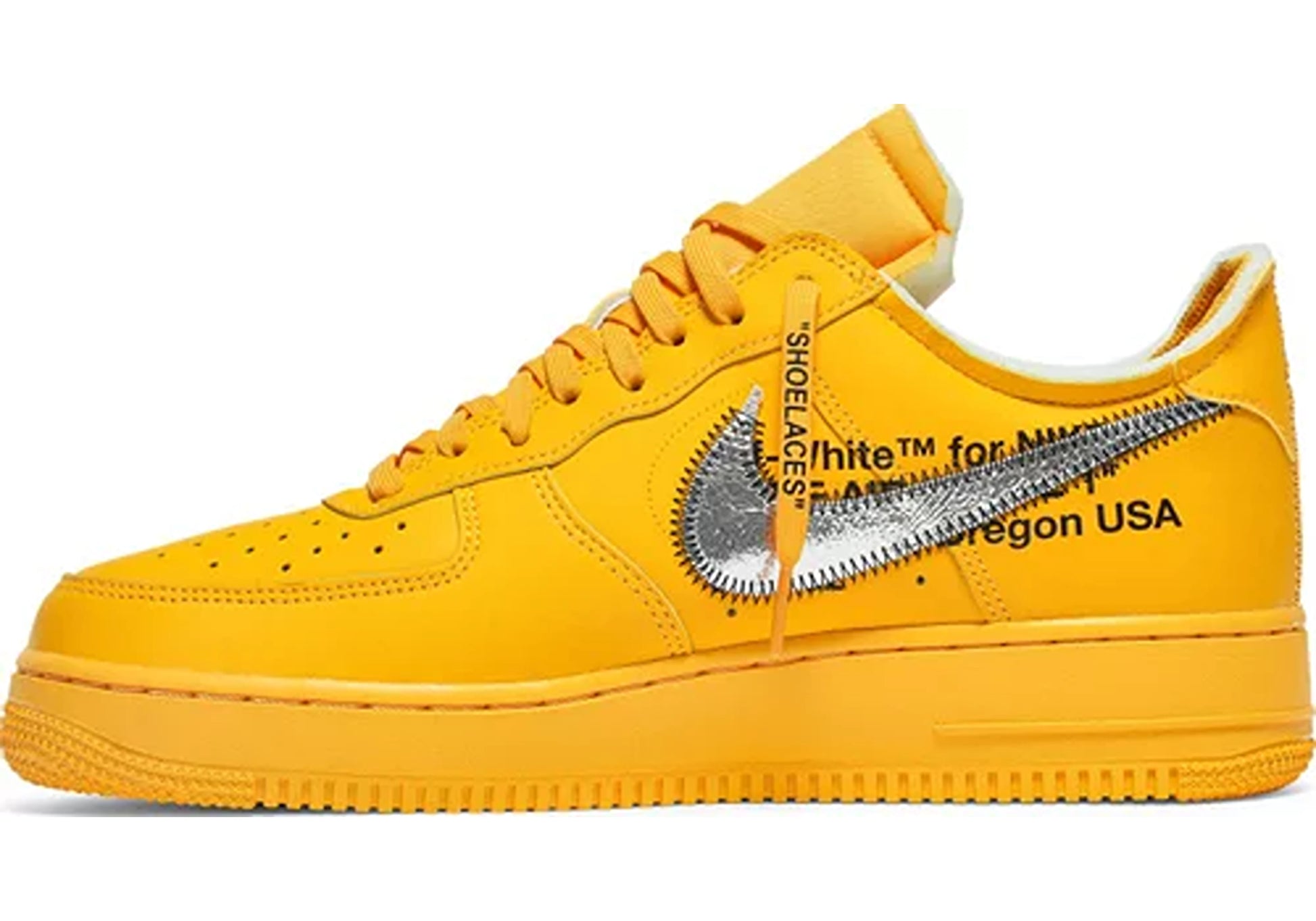 Der Nike Air Force 1 Low "Off-White ICA University Gold" ist nicht nur ein Sneaker, sondern ein Kunstwerk für die Füße, das die Grenzen zwischen Mode und Kunst verschwimmen lässt und die einflussreiche Kollaboration zwischen Nike, Off-White und dem Institute of Contemporary Art zelebriert.