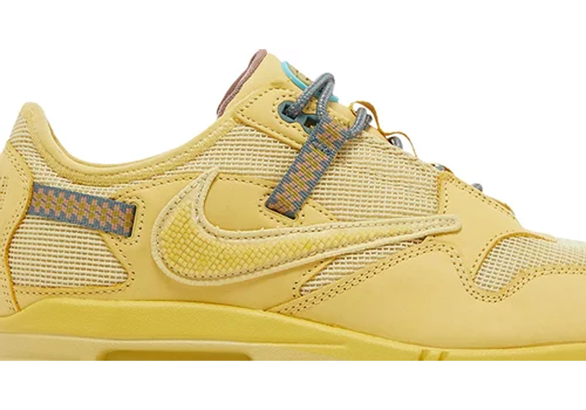 Das markante Merkmal des Air Max 1 Travis Scott "Cactus Jack Saturn Gold" ist sein innovatives Schnürsystem. Im Gegensatz zu herkömmlichen Air Max-Modellen sind die Schnürbänder hier intern eingefädelt, was nicht nur für einen unkonventionellen Look sorgt, sondern auch für zusätzliche Stabilität und eine individuelle Passform.