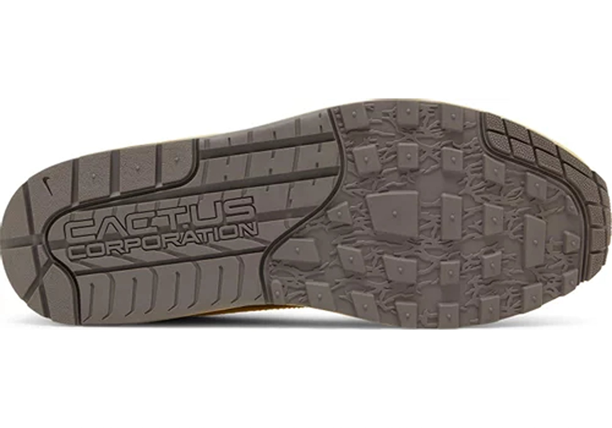 Die Zwischensohle des Air Max 1 Travis Scott "Cactus Jack Saturn Gold" ist mit der legendären Air Max-Dämpfungstechnologie ausgestattet, die für erstklassigen Tragekomfort und eine reaktionsfreudige Dämpfung bei jedem Schritt sorgt. Die robuste Gummilaufsohle bietet außerdem zuverlässige Traktion und Strapazierfähigkeit.